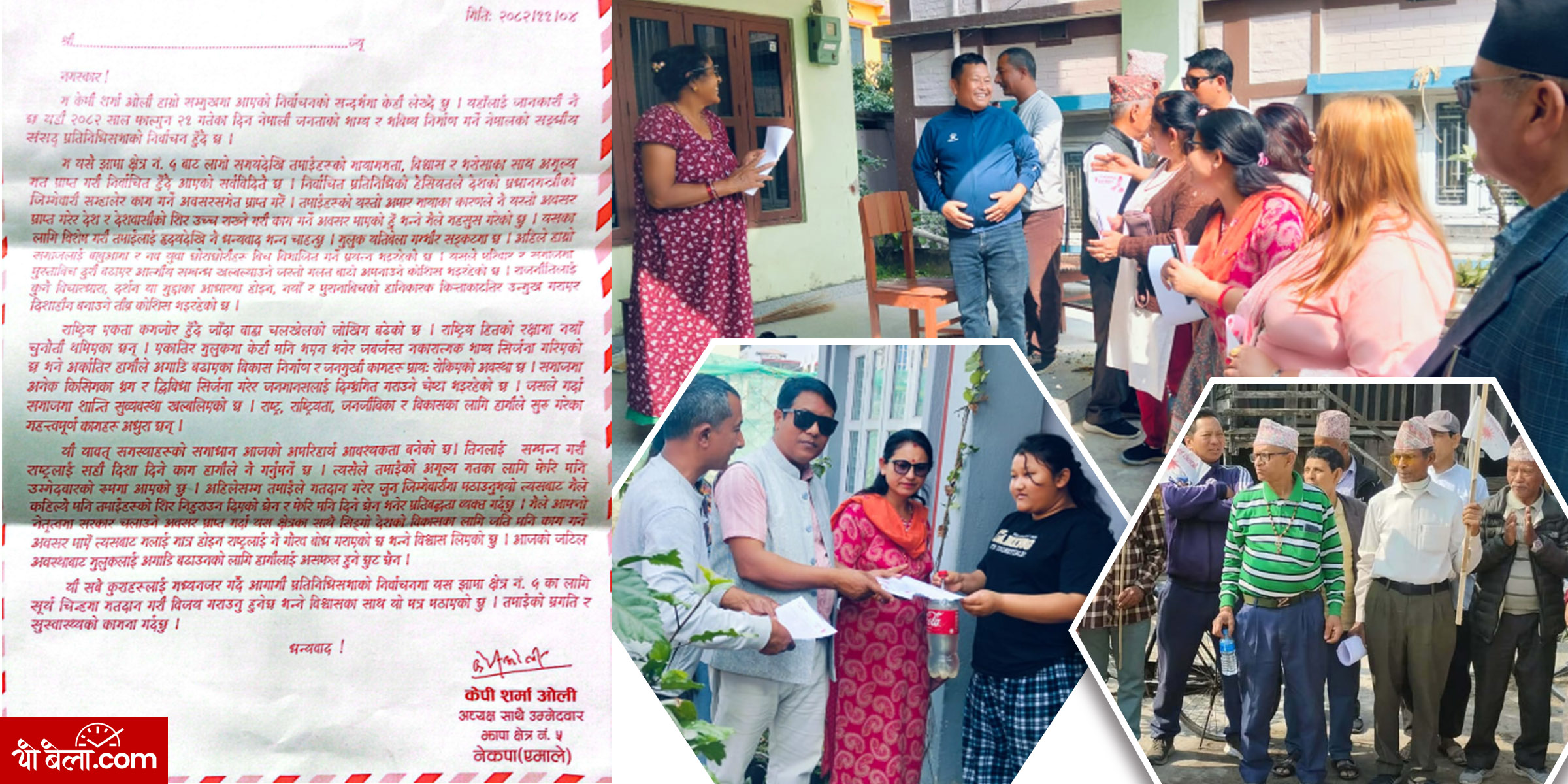 दमक-नेकपा एमालेका अध्यक्ष तथा पूर्व प्रधानमन्त्री केपी शर्मा ओलीले प्रत्येक मतदाता लाई सम्बोधन गरेको पत्र लिएर कार्यकर्ता घरघरमा पुगिरहेका छन्। झापा जिल्ला निर्वाचन क्षेत्र नम्बर ५ अन्र्तगतका २९ वटै वडामा नेकपा एमालेले मतदातालाई सम्बोधन गरेको पत्र लिएर घरघरमा पुगिरहेका छन्।