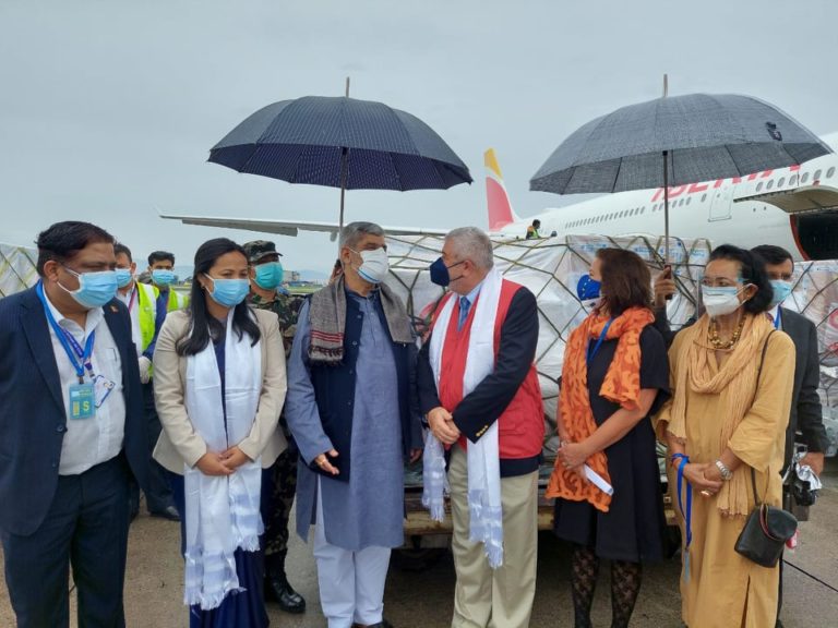 काठमाडौं- स्पेनबाट कोरोना विरुद्धको स्वास्थ्य सामग्री नेपाल आइपुगेको छ ।