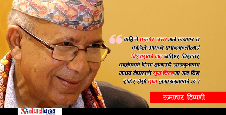 माधव नेपालले व्यक्तिगतरुपमा इमान्दारको छविलाई कपट र संकीर्ण भएको छर्लङ्गमात्रै बनाउनुभएन कतिपय नेता कार्यकर्ताको राजनीतिक भविष्य सिध्याइदिनुभयो ।