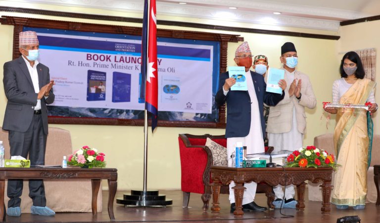 पुर्वपरराष्ट मन्त्री प्रदीप ज्ञवालीको सवा तीन वर्षे कार्यकालका महत्वपूर्ण मन्तव्य तथा अनुभवलाई समेटेर तयार गरिएका फरेन पोलिसिज अफ नेपाल ओरियन्टेसन एन्ड प्रायोरिटी तथा कोभिड १९ मल्टी डिसिप्लिनरी न्यारेटिभ्स् शीर्षकका दुई पुस्तक सार्वजनिक गर्दै प्रधानमन्त्री ओलीले यस्तो विचार राख्नुभएको हो । परराष्ट मामिला अध्ययन प्रतिष्ठानद्वारा शुक्रबार आयोजित उक्त कार्यक्रममा संस्थाले प्रकाशन गरेका अन्य दुई पुस्तिकाको पनि प्रधानमन्त्रीले विमोचन गर्नुभएको थियो । ‘जसरी चुच्चे नक्सालाई कसैले मेटाउन सक्दैन त्यसै गरी विदेश नीति पनि कसैले हल्लाउन सक्दैन किनकी यो अन्यौलमा होइन, प्रस्टताका आधारमा बनेको छ’, प्रधानमन्त्रीको भनाई थियो ।