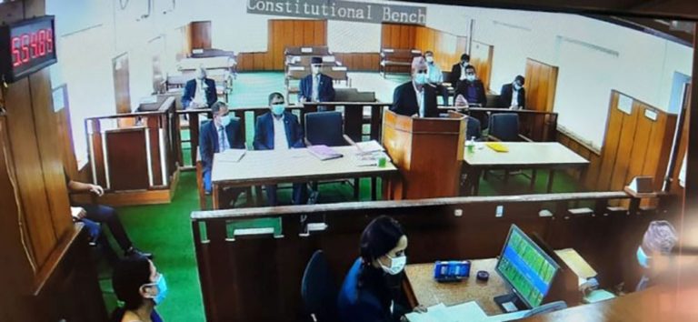 प्रधानन्यायाधीश चोलेन्द्रशम्शेर जबरा तथा न्यायाधीश दीपककुमार कार्की, मीरा खड्का, ईश्वरप्रसाद खतिवडा र डा. आनन्दमोहन भट्टराईको संवैधानिक इजलासमा शुक्रबार सरकारी पक्षको बहस सकिएपछि आज समाभुखका तर्फबाट अधिवक्ता मेघराज पोखरेलले बहस सुरु गर्नुभएको हो ।