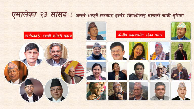 पार्टीभित्रको विवादलाई पार्टीभित्रै बसेर समाधान गर्नुको साटो पार्टी कमजोर बनाएर हर्ष बढाईँ गरिरहेका सूर्य चिन्हबाट चुनाव जितेकाहरुले देउवालाई प्रधानमन्त्री हुने नियुक्त हुने बाटो खोलिदिएर पार्टीलाई मात्र हैन, आम कार्यकर्ताता र मतदातालाई नै घात गरेका छन् । अब २३ जना माननीयहरु सत्ता पक्षमा बस्लान् वा विपक्षमा ? एमालेको १० बुँदे सहमतिले त उनीहरुलाई विपक्षकै कुर्सीमा राख्ला तर तर २३ से को मनचाहिँ सत्ता पक्षमा नै रहरिहने हुन्छ । आफ्नै पार्टीका प्रधानमन्त्रीविरुद्ध विपक्षी नेतालाई प्रधानमन्त्री बनाउन हस्ताक्षर गर्ने एमाले सांसदहरु को–को हुनुहुन्छ त । सबैले उहाँहरुको नाम सम्झिनु उपयुक्त नै हुन्छ ।