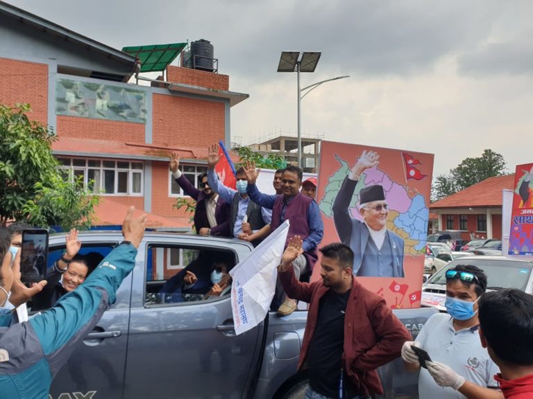 एमाले अध्यक्षसमेत रहनुभएका ओलीको स्वागतका लागि बालुवाटारदेखि बालकोटसम्म ठूलो संख्यामा कार्यकर्ता उभिएर बिदाइ गरेका छन् ।