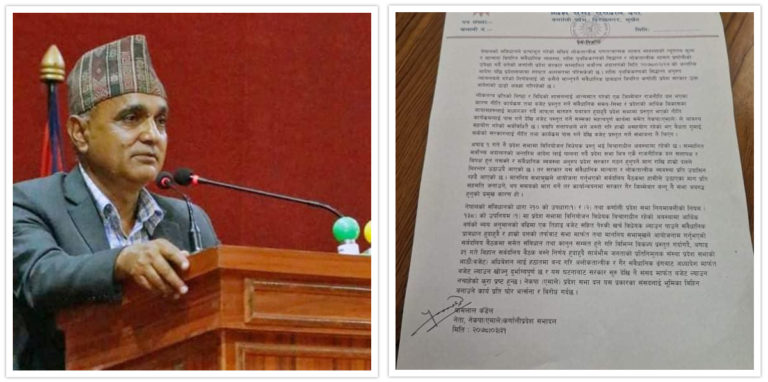 प्रदेश सभामा नियमावलीमा प्रदेश सभामा विनियोजन विधेयक विचाराधीन रहेको अवस्थामा आथिर्जक वर्षको व्यय अनुमानको बढीमा एक तिहाइ बजेट सहितको पेश्की खर्च विधेयक ल्याउन पाउने संवैधानिक प्रावधान हुँदा हुँदै अधिवेशन अन्त्य गरेर अध्यादेशबाट बजेट ल्याउनु गैरसंवैधानिक भएको एमालेको ठहर छ ।