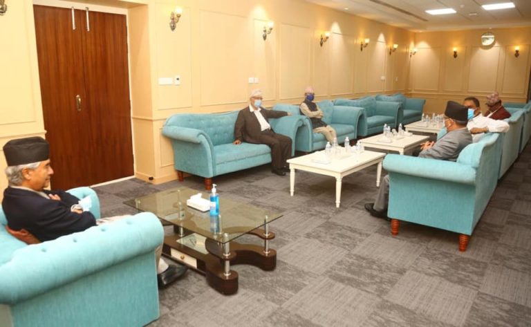 प्रधानमन्त्री कार्यालय सिंहदरवारमा जारी गठबन्धनको बैठकमा प्रधानमन्त्री शेरबहादुर देउवासहित माओवादी केन्द्रका अध्यक्ष पुष्पकमल दाहाल प्रचण्ड, जनता समाजवादी पार्टी (जसपा)का अध्यक्ष उपेन्द्र यादव, राष्ट्रिय जनमोर्चाका अध्यक्ष चित्रबहादुर केसी, कांग्रेस महामन्त्री पूर्णबहादुर खड्का सहभागी हुनुभएको छ ।