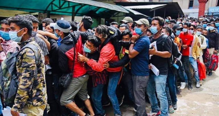 विदेश जाने युवाहरुलाई सम्बन्धित देशले कोभिड–१९ विरुद्धको खोप लगाएको प्रमाणपत्र लिने भएपछि युवाहरु खोप लगाएको प्रमाणपत्र लिनका लागि टेकुमा युवाहरुको भीड बढेको हो । सयौँको संख्यामा मानिहरुको भीड बढेपछि टेकु अस्पतालमा अस्तव्यस्तता देखिएको छ भने झनै कोभिड–१९ संक्रमणको जोखिम पनि बढेको छ ।
