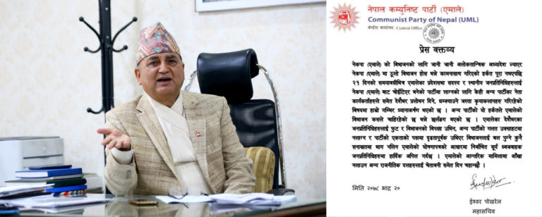 आइतबार राती एक विज्ञप्ती जारी गर्दै पोख्रेलले सरकारले अलोकतान्त्रिक अध्यादेश ल्याएर एमालेका प्रदेशसभा सदस्य र स्थानीय तहका जनप्रतिनिधीलाई पार्टी चोइटिएको पार्टीमा जान पाउने बाटो खुला गर्नु अलोकतान्त्रिक कदम भएको बताउनुभएको छ । ‘२१ दिनको समयअवधी भित्र एमालेका प्रदेशसभा सदस्य र स्थानीय तहका जनप्रतिनीधीलाई चोइटिएको पार्टीमा लाग्न अन्य दलका नेता कार्यकर्ताले धम्क्याउने,प्रलोभन दिने जस्ता कामप्रति हाम्रो गम्भिर ध्यानआकर्षण भएको छ’ पोखरेलले विज्ञप्तीमा भन्नुभएको छ ।