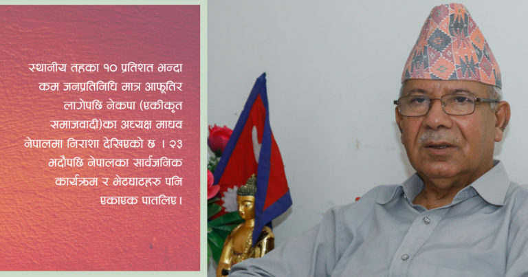 संघीय र प्रदेशसभा सदस्यहरुको साथ पाएर उत्साहित भएका नेपाल त्यतीबेला झसंग हुनुभयो जब स्थानीय तहका जनप्रतिनिधिले एमाले फुटाउने कदमलाई साथ दिएनन् । माधव नेपाललाई स्थानीय तहका कम्तीमा ३० देखि ४० प्रतिशत जनप्रतिनिधि आफ्नो पक्षमा आउने अड्कल थियो । तर त्यसको विपरीत करिब १० प्रतिशत मात्र जनप्रतिनिधि त्यो पनि ‘लो प्रोफाइल’ मात्र आफूतिर लागेपछि नेपाल स्वंय अहिले निराशामा हुनुहुन्छ ।