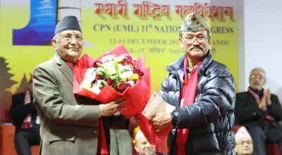अध्यक्ष ओलीले लाभका लागि संविधानअन्तर्गत पदको सपथ खाने र फेरि संविधानमाथि मतभेद कायम छ भनेर नक्कली कुरा गर्ने प्रवृत्तिलाई पनि चिरेर अघि बढ्दै राष्ट्रिय आकाङ्क्षालाई पूर्ति गर्न पूर्ण लोकतन्त्रका पक्षमा पार्टी प्रतिबद्ध रहेको जनाउनुभयो ।