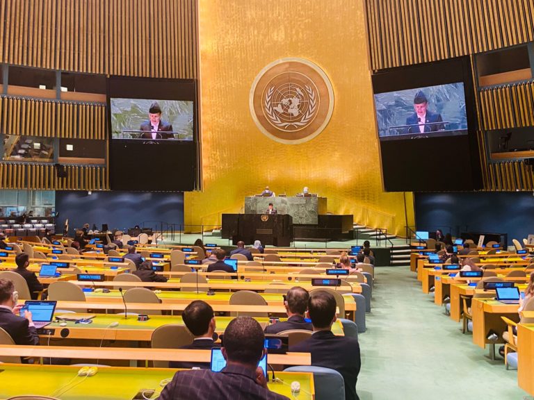 ‘आशाको माध्यमबाट प्रतिरोधका साथ कोभिड–१९ बाट पुनःस्थापना, दिगो पुनःनिर्माण, पृथ्वीको आवश्यकता पूरा गर्न तथा जनताका अधिकारलाई सम्मान गर्दै संयुक्त राष्ट्रसङ्घलाई पुनःजागृत गराउने’ विषयमा संयुक्त राष्ट्रसङ्घको ७६औँ महासभामा नेपालले जातीय बहुलसमाजहरूमा द्वन्द्वका जोखिम एवं तनाव अन्त्य गर्ने उत्तम औषधि लोकतन्त्र र वहुपक्षवाद भएका बताएको हो ।
