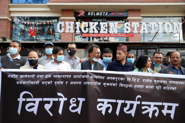 काठमाडौं – खानेपानी तथा ढल निकास कार्यालय जनकपुरका प्रमुख इन्जिनियर राजेश कुशवाहामाथि भएको दुर्व्यवहारको विरोधमा काठमाडौंमा प्रदर्शन भएको छ ।