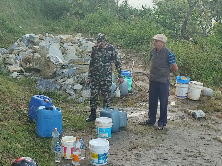 हाहाकार भएपछि नेपाली सेनाले खानेपानी वितरण गरेको छ । हनुमान ध्वज गुल्मले गुल्ममा रहेको पानी गढीका स्थानीय तथा होटेल व्यवसायीलाई वितरण गरेको गुल्मपति खिलबहादुर रानाले बताउनुभयो । गढीमा रहेका सरकारी कार्यालयलाई पनि खानेपानी वितरण गरिएको उहाँले बताउनुभयो । सेनाले जिल्ला प्रहरी कार्यालय, सशस्त्र प्रहरी बल, जिल्ला कारागार, जिल्ला प्रशासनलगायत स्थानीय र व्यवसायीलाई पानी सहयोग गरिरहेको हो ।