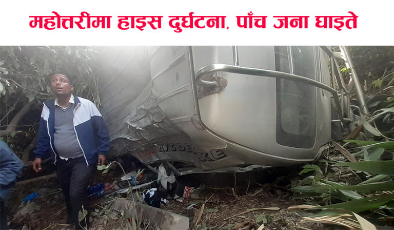 महोत्तरी- काठमाडौंबाट उदयपुर जाँदै गरेको बा३ख ९७८८ नम्बरको हाइस दुर्घटना हुँदा पाँच जना घाइते भएका छन् ।