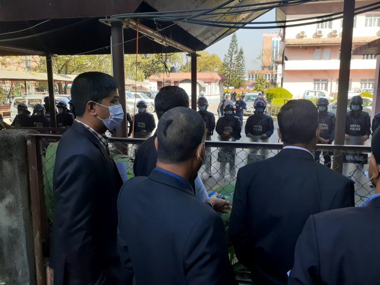 तर, सुरक्षाकर्मीले आन्दाेलनकारीलाई सर्वाेच्च अदालत प्रवेशमा राेक लगाएकाे छ । बारको टोली सर्वाेच्च अदालत जाने कार्यक्रम रहे पनि गेट बन्द गरिएकाे छ । स्थानीय प्रशासनले सुरक्षा व्यवस्था कडा पारेको छ । अधिवक्ता ओमप्रकाश अर्यालले कुनै पनि हालतमा सर्वाेच्चमा धर्ना दिइने बताउनुभयो । ‘गिरफ्तारी हुनुपरे पनि तयार छौँ, तर आन्दोलन जारी रहन्छ,’ उहाँले भन्नुभयो ।