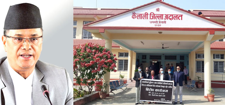 बारका पदाधिकारी तथा अधिवक्ताले हातमा कोलोपट्टी बाँधेर अदालत अगाडि एक घण्टा धर्ना दिएका हुन् । बारको केन्द्रीय तालिकाअनुसार कैलाली बारले प्रधान न्यायाधीशको राजीनामा माग गर्दै आन्दोलन गरेको बारका अध्यक्ष शिद्धराज ओझाले बताउनुभयो ।