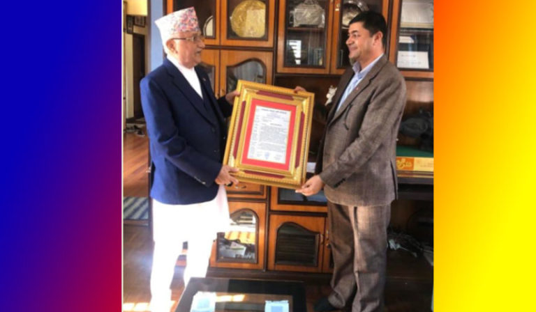 ‘तपाईंको प्रधानमन्त्रीकालमा मुलुकले राष्ट्रियताको सम्बर्धन र नेपाली जनताको जीवनस्तर विकासको लागि गर्नुभएको काम प्रशंसनीय र अतुलनीय छ’, उहाँलाई प्रदान गरिएको सम्मान पत्रमा लेखिएको छ । ‘नेपाल कम्युनिष्ट पार्टी (एमाले) लाई देशको सबैभन्दा ठूलो पार्टी बनाउन सफल हुनुभएकोमा यहाँलाई हार्दिक बधाई व्यक्त गर्दछौँ’, अभिनन्दन पत्रमा उल्लेख छ ।