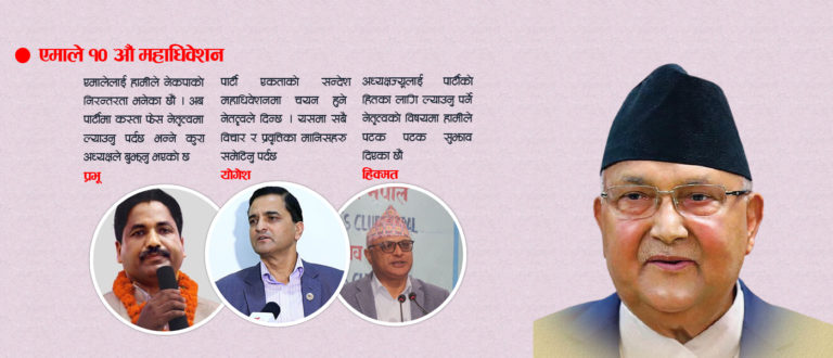 एमालेमा अहिले तीन ध्रुवका नेताहरुलाई व्यवस्थापन गर्नुपर्ने चुनौति छ । पहिलो पार्टीको संस्थापन पक्ष, दोस्रो पूर्व माओवादीबाट आएको समुह र तेस्रो १० बुँदे पक्षधर १० जना नेताको समूह । ‘अध्यक्षले तीनै पक्षका नेताहरुको भूमिका,कार्यकर्तामा उनीहरुको लोकप्रियता,विगतको भूमिका,चरित्र र अन्य आनीबानीको विष्लेषण गर्र्दैहुनुहुन्छ’ एमालेका एक स्थायी समिती सदस्य भन्नुहुन्छ ‘दोस्रो र तेस्रो पक्षको चाहना सर्वसम्मत नेतृत्व होस भन्ने छ ,पहिलो पक्ष चुनाव मै जानु पर्छ भन्ने पक्षमा छ । त्यसैले सैद्धान्तिक रुपमा चुनाव वा सर्वसम्मत भन्ने टुंगो लागेपछि व्यक्तिको खोजी हुन्छ ।’