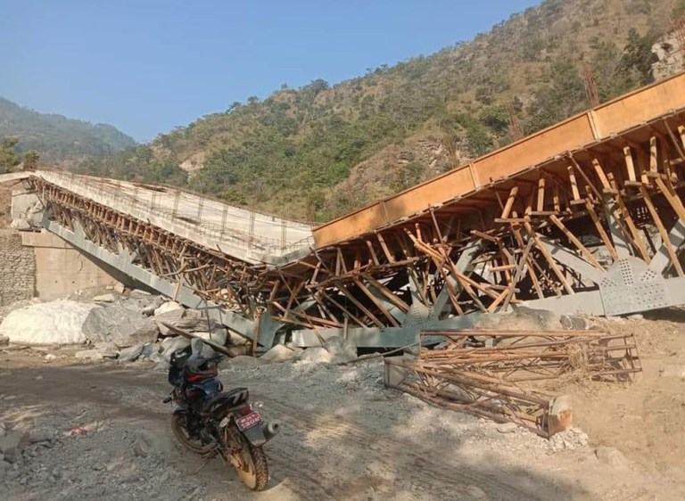 भोजपुर – जिल्लालाई उत्तर-दक्षिण जोड्नका लागि कावा खोलामा रु.५ करोड बढीको लागतमा निर्माण भईरहेको पक्की पुल भाँचिएको छ । भोजपुरको रामप्रसादराई गाउँपालिका र हतुवागढी गाउँपालिकालाई जोड्ने कावा खोलामाथि निर्माण भइरहेको पुल भाँचिएको हो ।