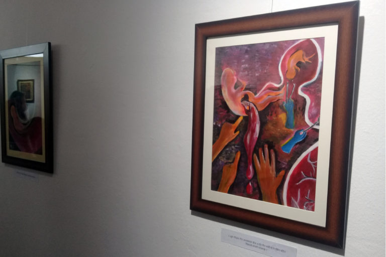 आजदेखि सुरु भई तीन दिनसम्म चल्ने प्रदर्शनीमा पाण्डेले भन्नुभयो, ‘पेटदेखि मृत्युघाटसम्म कुनकुन अवस्थामा महिलामाथि हिंसा हुन्छन् भन्ने कुरा देखाएकी छु, समाजमा समानताका कुरा उठ्न थाले पनि महिला एक तह पछाडी नै छन्, भन्ने गलत सोच अझै जरामा छ, कलामार्फत सोचमा परिवर्तन गराउने मेरो सानो प्रयास हो ।’