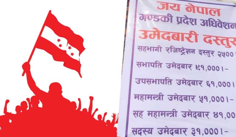 पोखरा – नेपाली कांग्रेसको प्रदेश अधिवेशन चलिरहेको छ । गण्डकी प्रदेशमा कांग्रेस सभापति पदमा उम्मेदवारी दिँदा रु.९१ हजार शुल्क बुझाउनुपर्ने छ ।