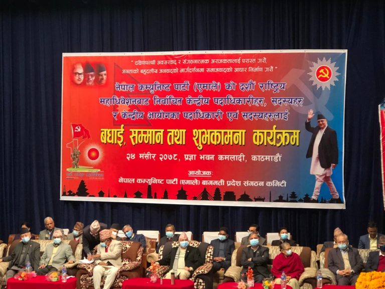 पार्टीको बागमती प्रदेश कमिटीले आयोजना गरेको कार्यक्रममा दशौं महाधिवेशनबाट निर्वाचित पार्टीका सबै पदाधिकारी र केन्द्रीय सदस्यहरुलाई बधाइ तथा सम्मान गर्ने कार्यक्रम रहेको अध्यक्ष आनन्द पोखरेलले जानकारी दिनुभयो ।