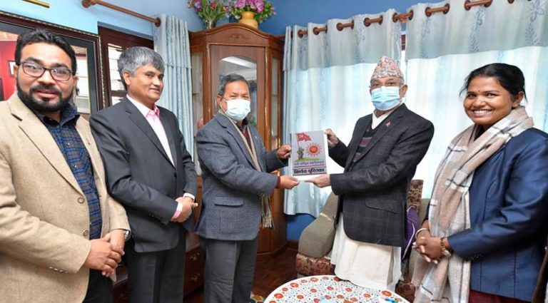 भक्तपुर – नेकपा एमाले, दशौं राष्ट्रिय महाधिवेशनको निर्णय लेखन समितीले अध्यक्ष मण्डलका अध्यक्ष एवं नवनिर्वाचित अध्यक्ष केपी शर्मा ओलीलाई निर्णय पुस्तिका हस्तान्तरण गरेको छ ।