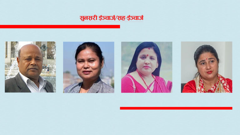 एमाले केन्द्रीय सदस्य कुसियतलाई ईञ्चार्ज बनाइँदा केन्द्रीय सदस्यत्रय भगवती चौधरी, लक्ष्मी गौतम र मञ्जु भण्डारी सहईञ्चार्ज हुनुभएको छ । कुसियत एक नम्बर प्रदेशका पूर्वमन्त्री, चौधरी पूर्वराज्यमन्त्री तथा गौतम इटहरी र भण्डारी धरान उपमहानगरपालिकाका उपमेयर हुनुहुन्छ ।