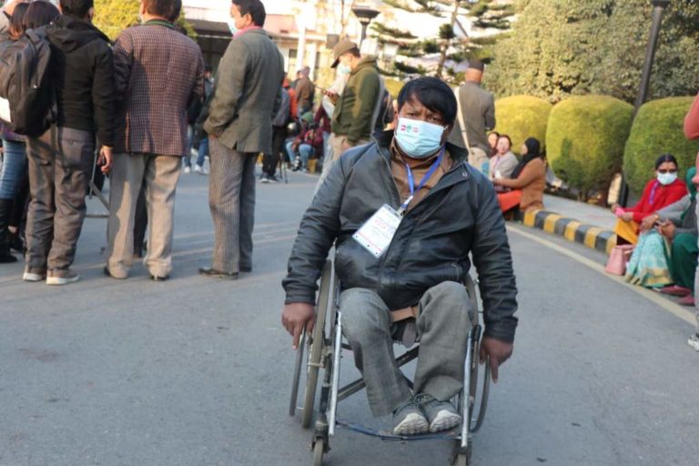 पार्टी सभापति चयनका लागि अपांगता भएका प्रतिनिधिहरु ह्विलचियर र लौरो टेकेर मतदान गर्न मतदानस्थल राष्ट्रियसभा गृह पुगेका छन्। उनीहरुलाई लाइन नलागी मतदान गर्ने व्यवस्था गरेको कांग्रेस निर्वाचन समितिले जानकारी दिएको छ ।