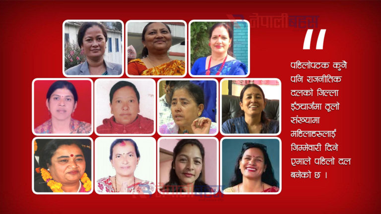 काठमाडौं– केन्द्रीय कमिटीमा एक सचिव सहित एक तिहाइ महिलालाई निर्वाचित गरेको नेकपा एमालेले ११ जिल्लाका ईञ्चार्ज महिला नेतृहरुलाई दिएको छ । पहिलोपटक कुनै पनि राजनीतिक दलको जिल्ला ईञ्चार्जमा महिलाहरुलाई जिम्मेवारी दिने एमाले पहिलो दल बनेको छ ।
