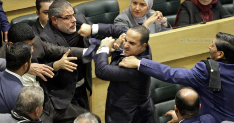 अम्मान – जोर्डनको संसदमा सांसदहरुबीच हात हालाहाल र कुटाकुट भएको छ । विवाद र चर्काचर्कीपछि सत्ता पक्ष र विपक्षी सांसदहरुबीच संसदभित्रै कुटाकुट भएको हो । सभामुखले उपसभामुखलाई सदन छोड्न भनेपछि विवाद चर्किएको थियो ।