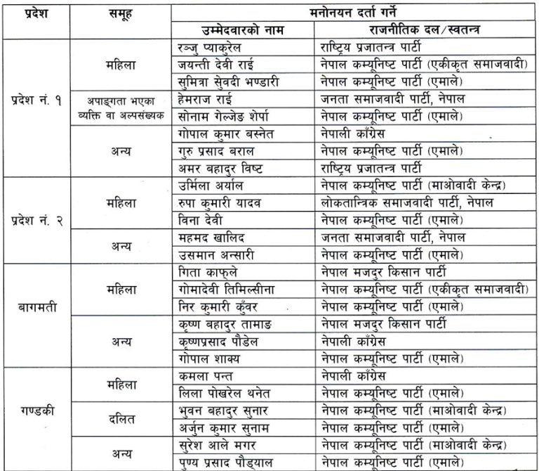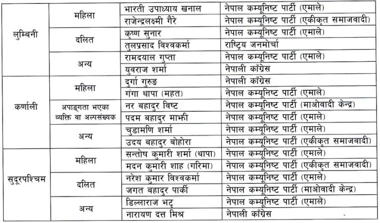 निर्वाचन आयोगका अनुसार प्रदेश १, २ र वागमतीमा त्रिपक्षीय प्रतिस्पर्धा हुनेछ भने गण्डकी, लुम्बिनी, कर्णाली र सुदूरपश्चिममा द्विपक्षीय प्रतिस्पर्धा हुनेछ ।