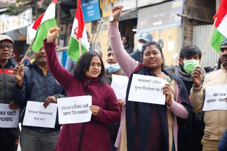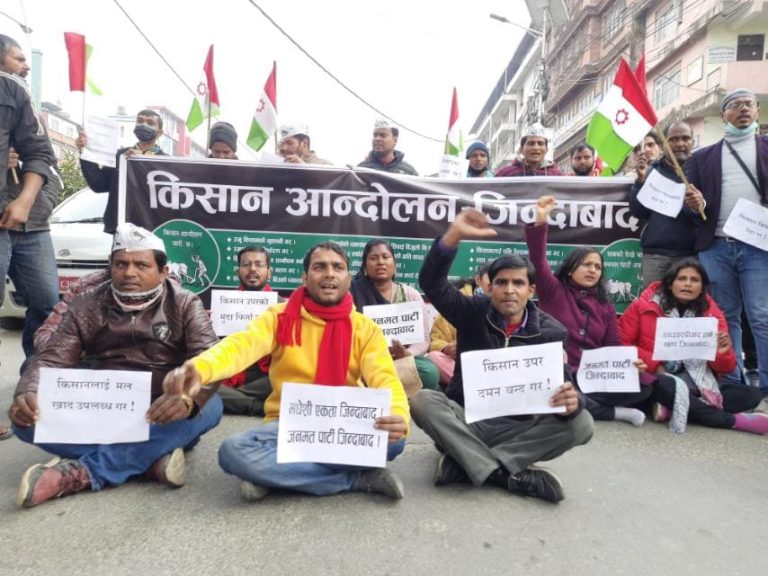 जनमत पार्टी उपत्यका समन्वय समितिले किसानहरूको माग सम्बोधन गर्न माग गर्दै माइतीघर मण्डलामा विरोध प्रदर्शन गरेको हो । प्रदर्शनमा सहभागीहरूले ‘किसानको माग पूरा गर, समयमा मल सिँचाइको व्यवस्था गर’जस्ता नाराहरु लगाएका थिए ।