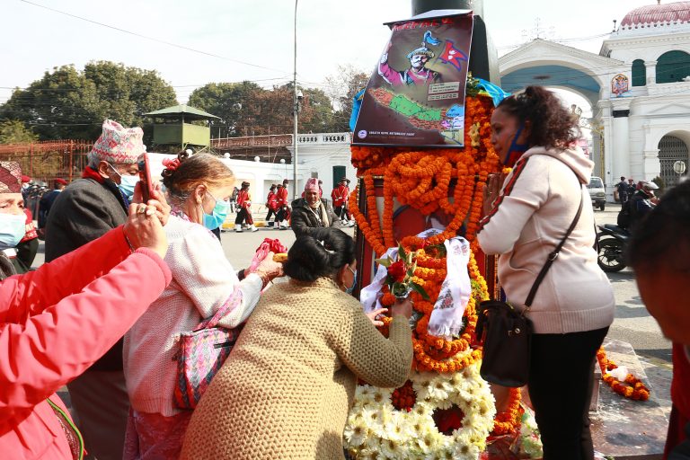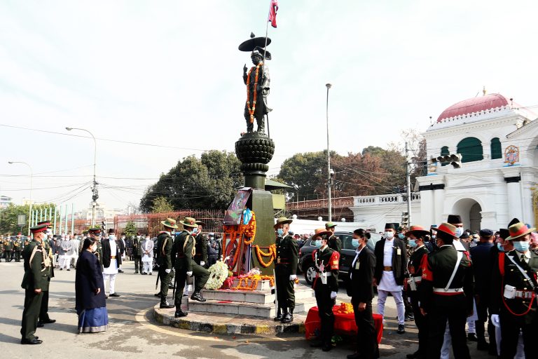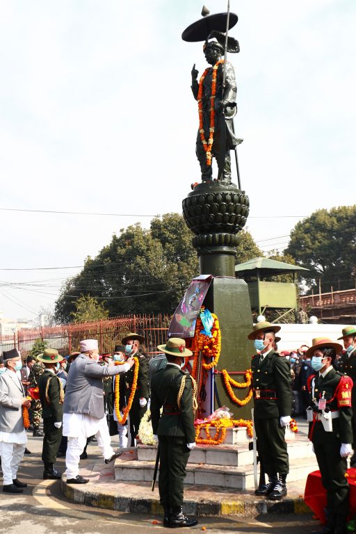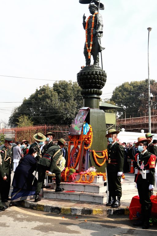 काठमाडौं – राष्ट्रपति विद्यादेवी भण्डारीले पृथ्वीजयन्तीको अवसरमा मंगलबार पृथ्वीनारायण शाहको शालिकमा माल्यार्पण गर्नुभएको छ ।
