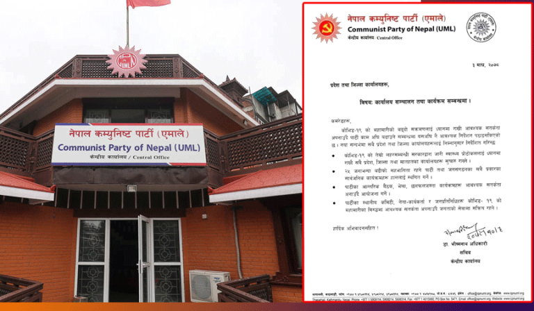 काठमाडौं – नेकपा एमालेले कोरोना महामारीमा स्वास्थ्य मापदण्ड अपनाउँदै जनताको सेवामा निरन्तर लाग्न कार्यकर्ताहरुलाई निर्देशन गरेको छ ।