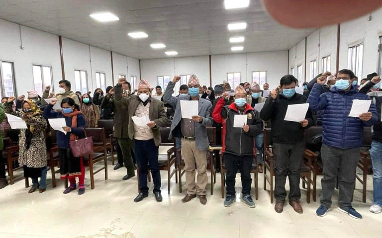 पार्टी स्थायी कमिटी सदस्य एवं सम्पर्क समन्वय कमिटीका ईन्चार्ज लालवाबु पण्डितले निर्वाचित नयाँ कमिटीका पदाधिकारीहरुलाई सपथ ग्रहण गराउनु भएको हो ।