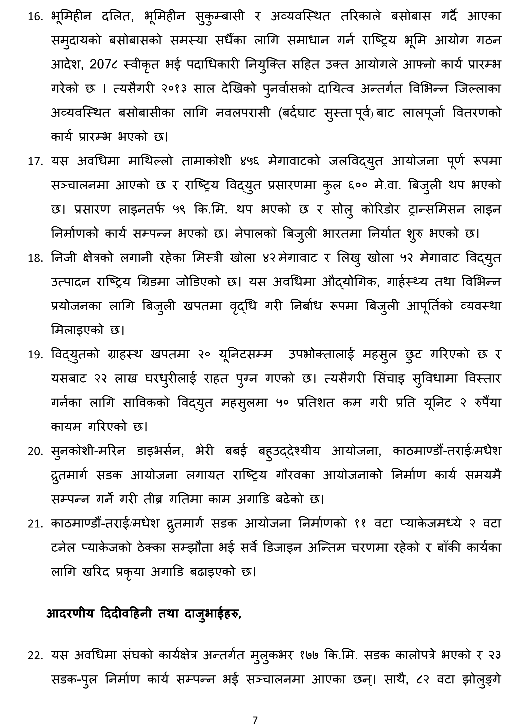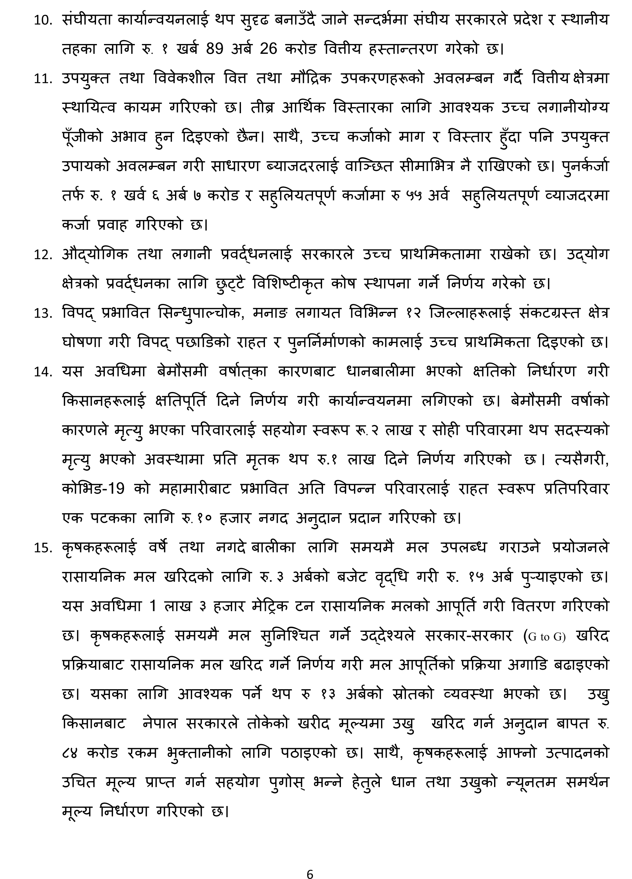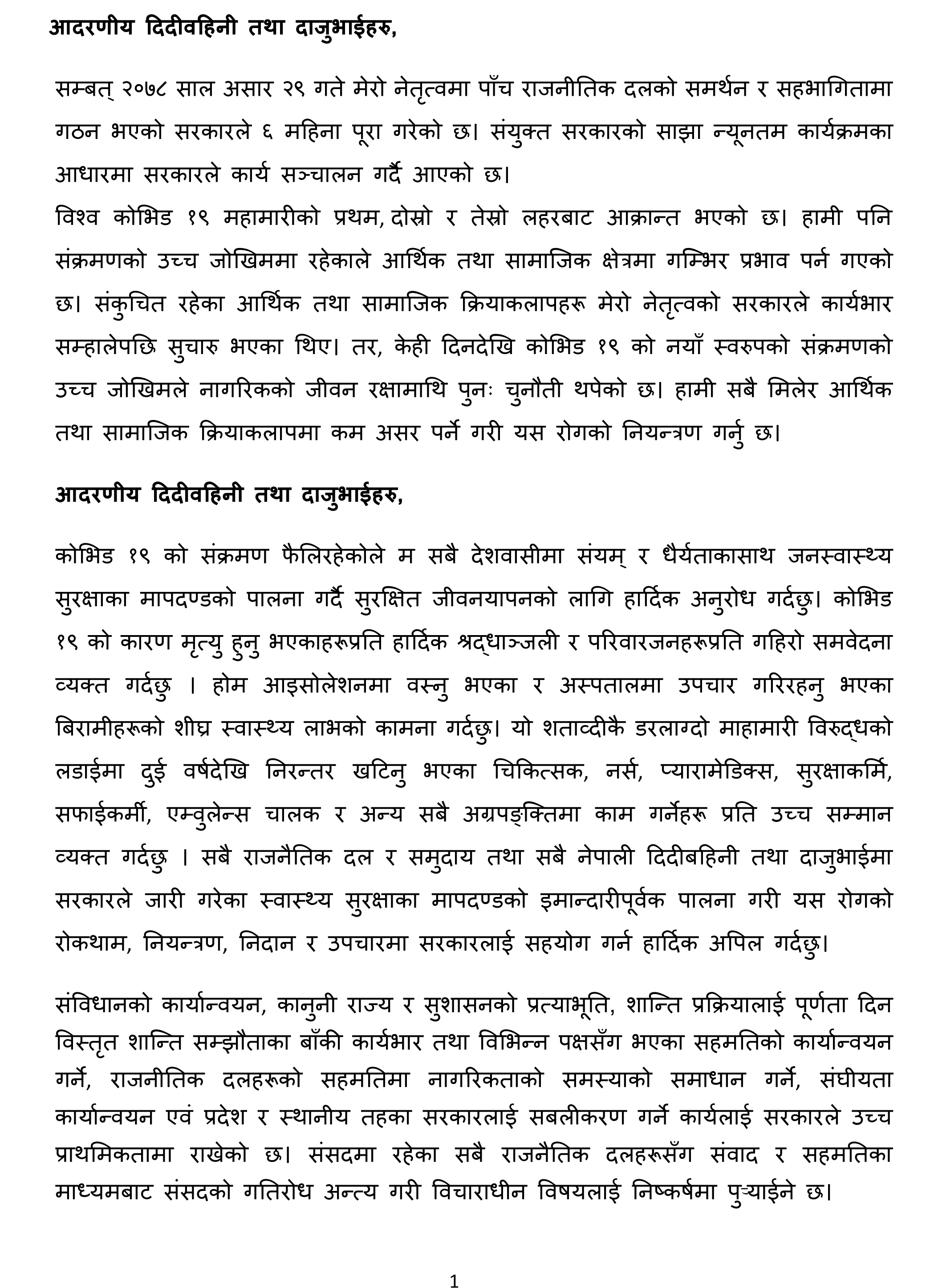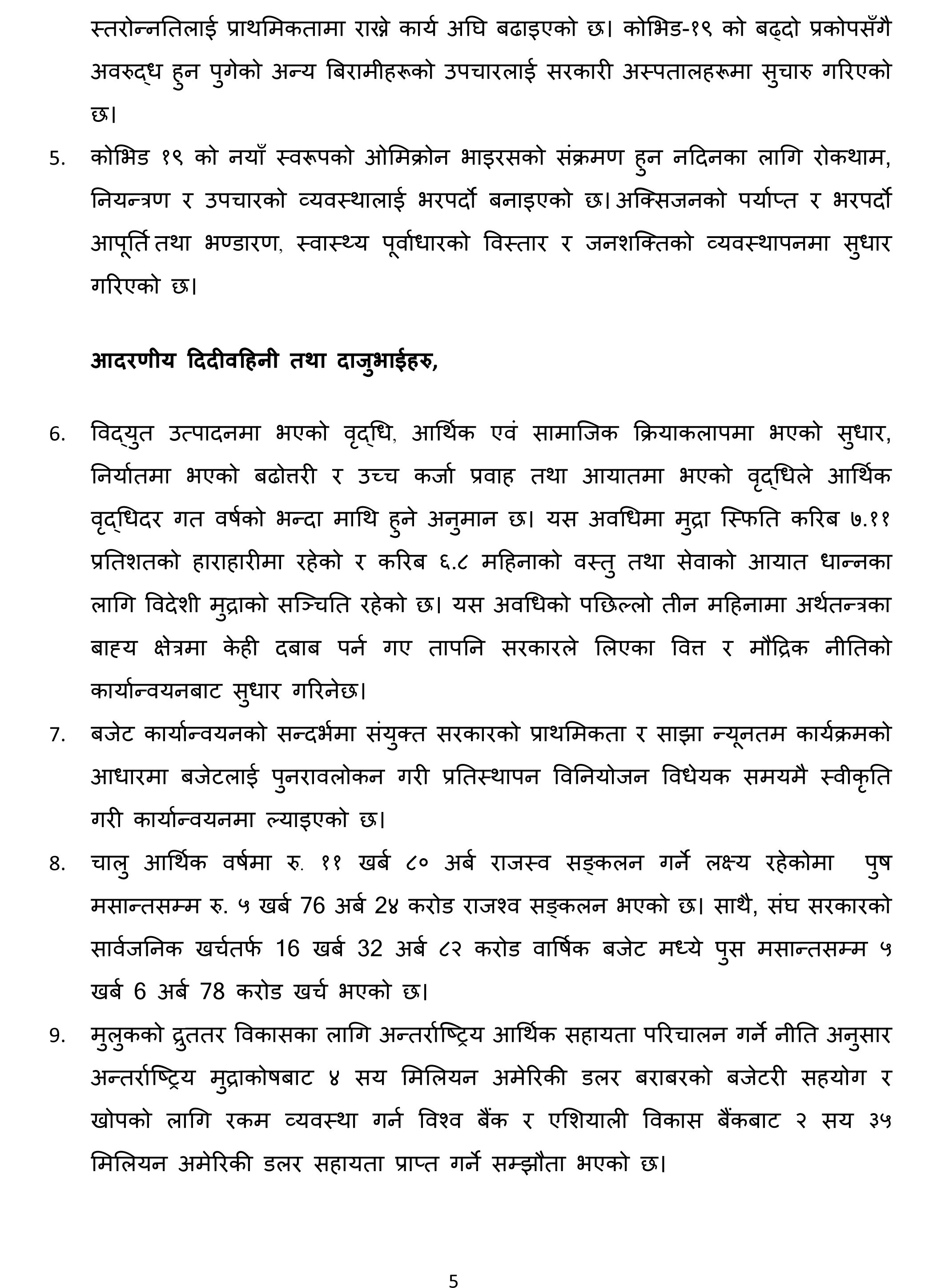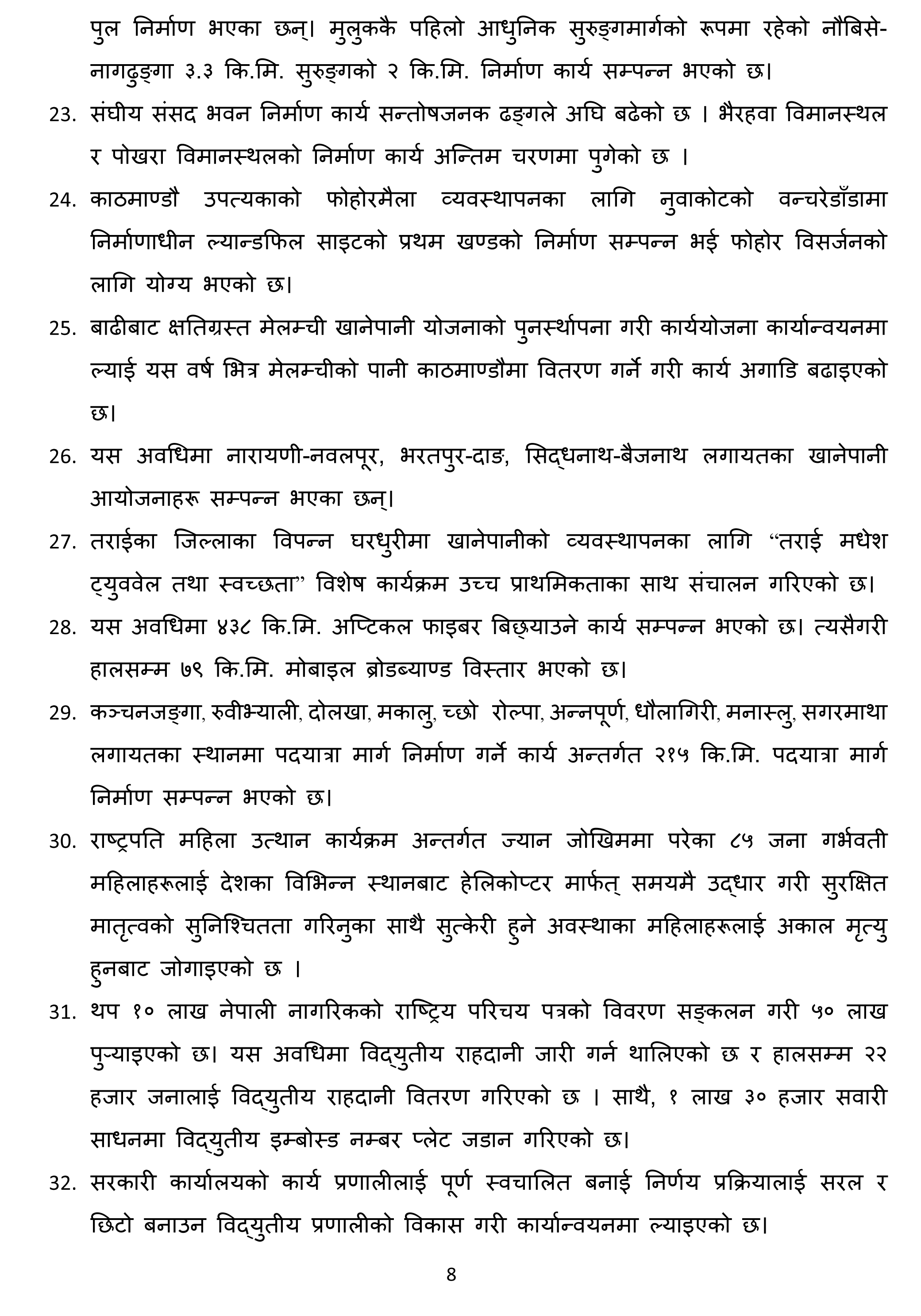 ४७ बुँदामा ६ महिनाको उपलब्धि सार्वजनिक गर्दै प्रधानमन्त्री देउवाले यसै महिनादेखि ६० वर्षमाथिका नागरिकलाई ‘बुस्टर डोज’ दिइने जानकारी दिनुभयो । उहाँले ८२ वटा झोलुंगे पुल र १७७ किलोमिटर सडक कालेपत्र गर्न सफल भएको पनि बताउनुभयो ।