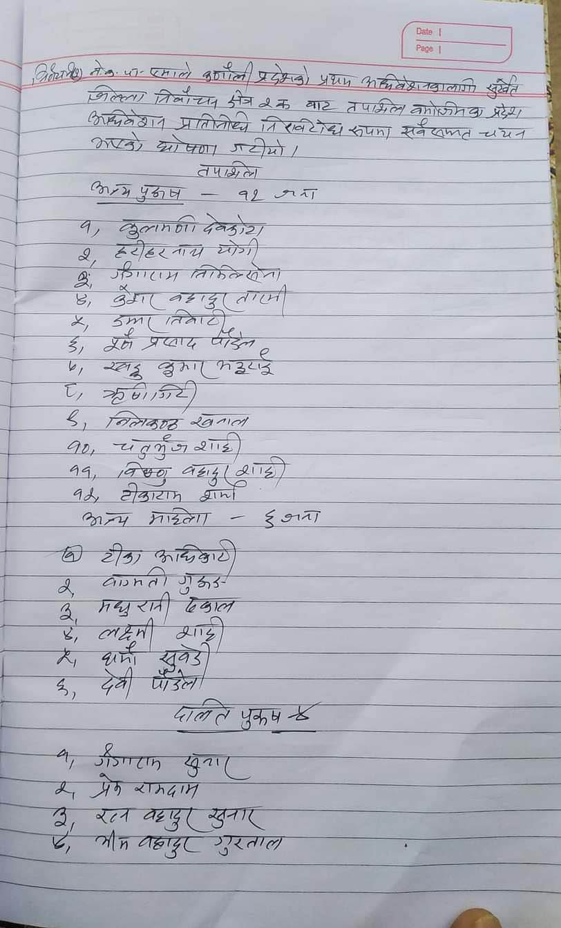 त्यस्तै, महिलाबाट टीका अधिकारी, वाग्मती गुरुङ्ग, मधरानी ढकाल, लक्ष्मी शाही, धर्मा सुवेदी र देवि पौडेल सर्वसम्मत प्रतिनिधिमा चयन भएका छन् ।