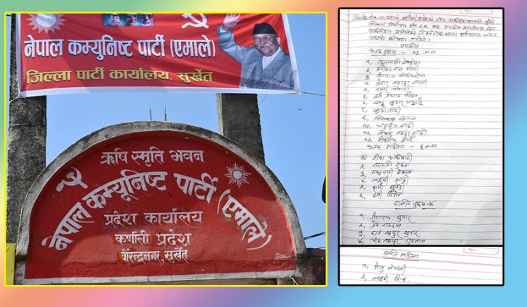 एमाले सुर्खेतका अनुसार कुलमणि देवकोटा, हरिहरनाथ योगी, गंगाराम तिमिल्सेना, केशरबहादुर तारामी, डम्मर तिवारी, पूर्णप्रसाद पौडेल रहेका छन् ।