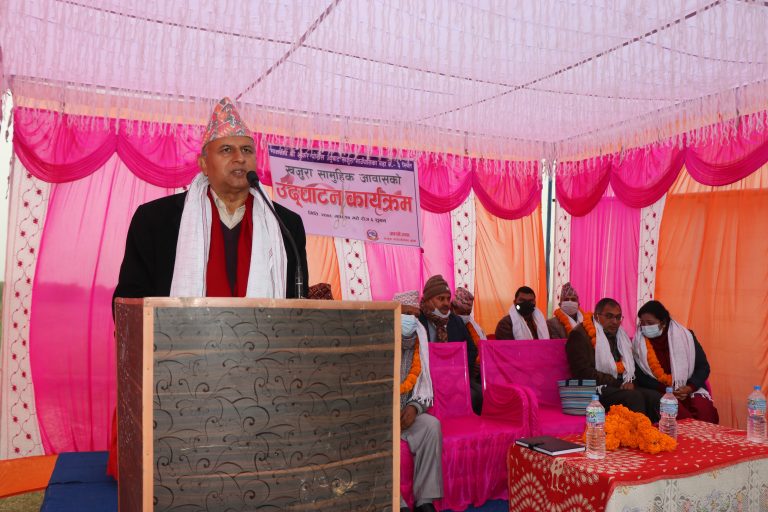 बाँकेको खजुरा गाउँपालिकाले तराई-मधेस समृद्धि कार्यक्रमअन्तर्गत करीब एक करोड रुपियाँको लागतमा घरवास र जग्गाविहीन विपन्न परिवारका लागि निर्माण गरेको सामूहिक आवास शुक्रबार उद्घाटन गर्दै उहाँले सो दाबी गर्नुभएको हो ।