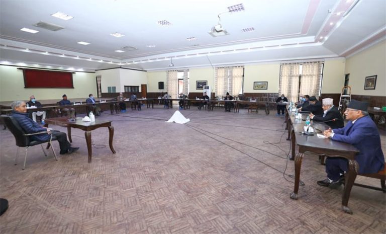 शनिबार दोस्रो पटक साँझ प्रधानमन्त्रीको सरकारी निवास बालुवाटारमा बसेको सत्तारुढ दलको बैठकले यस्तो सुझाव दिएको बैठकपछि काँग्रेस नेता तथा सञ्चारतथा सूचना प्रविधि मन्त्री ज्ञानेन्द्रबहादुर कार्कीले जानकारी दिनुभयो ।