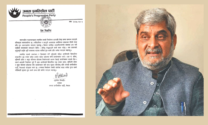 आगामी जेठमा निर्वाचन सम्पन्न गर्ने दलहरूको प्रतिबद्धता स्वागत योग्य रहेको बताउँदै त्रिपाठीले भन्नुभएको छ, ‘स्थानीय तहको नामांकन र सिमांकन गर्ने उद्देश्यले गठित आयोगको सिफारिस तत्कालीन प्रदेश २ अर्थात मधेश प्रदेशमा मात्रै कार्यान्वयन भयो । प्रदेश १, लुम्बिनी प्रदेश र सुदूपश्चिम प्रदेशमा निर्वाचनको कारण देखाई कार्यान्वयन भएको छैन । तसर्थ आगामी निर्वाचन पूर्व नै उक्त आयोगको सिफारिश प्रदेश १, लुम्बिनी प्रदेश र सुदूरपश्चिम प्रदेशमा पनि कार्यान्वयन गरी मात्र चुनाव गरियोस् भनी जनता प्रगतिशील पार्टी नेपालको जोडदार माग छ ।’