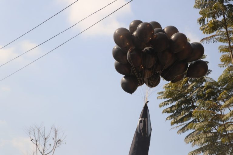 युवा संघले विरोधस्वरुप कालो बेलुन बोकेर सडकमा उत्रिएका छन्।