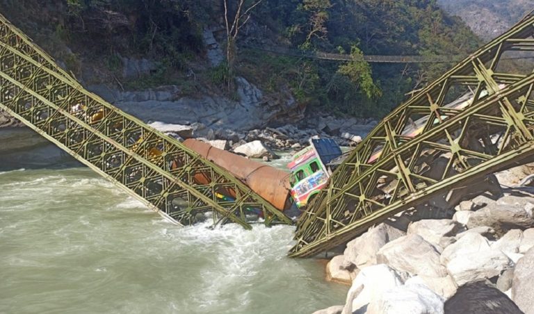 पुलको मध्यभागबाट भाँचिएपछि तीनवटै ट्रक नदीको बीचमा खसेका छन्। दुर्घटनापछि चालक र सहचालकलाई स्थानीयले बचाएका छन्।