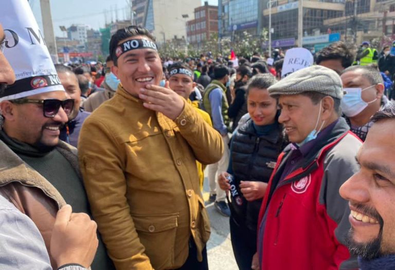 संसदीय दलको बैठकलगत्तै माओवादी कार्यकर्ता र भ्रातृ संगठनको एमसीसीविरुद्धको प्रदर्शनमा नेता श्रेष्ठ पनि सहभागी हुनु भएको हो ।