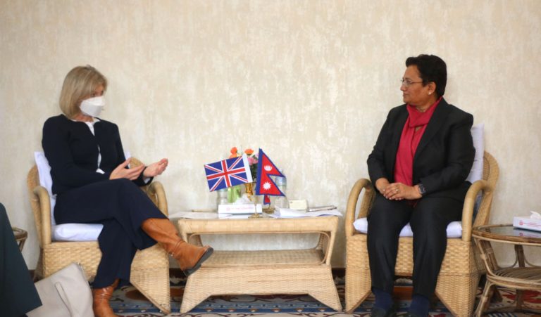 काठमाडौं – ऊर्जा, जलस्रोत तथा सिँचाइमन्त्री पम्फा भुसालसँग नेपालका लागि बेलायती राजदूत निकोला पोलिटले शिष्टाचार भेट गर्नुभएको छ । मन्त्रालयमा आज भएको भेटमा उहाँहरूबीच आपसी हित र चासोका विविध विषयमा छलफल भएको थियो ।