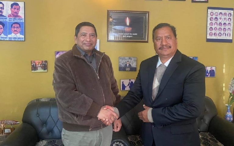 काठमाडौं -सत्तारूढ नेकपा माओवादी केन्द्रका वरिष्ठ नेता नारायणकाजी श्रेष्ठ ‘प्रकाश’ र नेपाल कम्युनिस्ट पार्टीका महासचिव नेत्रविक्रम चन्द ‘विप्लव’बीच आज विहान बिहान भेटवार्ता भइरहेको छ।
