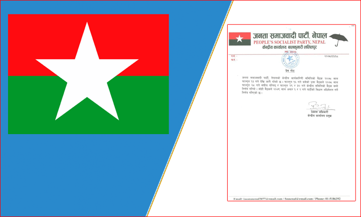 काठमाडौं – जनता समाजवादी पार्टी नेपालले आउँदो १ र २ असारमा पार्टीको विधान अधिवेशन गर्ने निर्णय गरेको छ ।