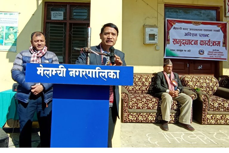 सिन्धुपाल्चोक – मेलम्चीको नगर अस्पतालमा मेलम्ची नगरपालिका, संसद् विकास कोष, ह्योल्मो सिन्धु मेलम्ची सामाजिक उत्थान कार्यक्रम सञ्चालन समितिलगायतको सहयोगमा करिब रु.एक करोडमा जडान गरिएको ४८ सिलिन्डर क्षमता प्लान्टबाट अक्सिजन उत्पादन सुरु गरिएको छ । पूर्वमन्त्री शेरबहादुर तामाङले सो प्लान्टको उद्घाटन गर्नुभयो ।