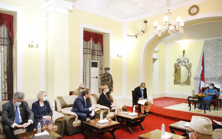 काठमाडौं – नेपाल–फ्रान्स सम्बन्धलाई थप प्रगाढ बनाउने उद्देश्यले नेपालको पाँच दिने औपचारिक भ्रमणमा रहेको फ्रान्सेली प्रतिनिधिसभाको फ्रान्स–नेपाल मैत्री समूहका अध्यक्ष भेरोनिक रियोतोँ नेतृत्वको प्रतिनिधिमण्डलले राष्ट्रपति विद्यादेवी भण्डारीसँग शिष्टाचार भेट गरेको छ ।