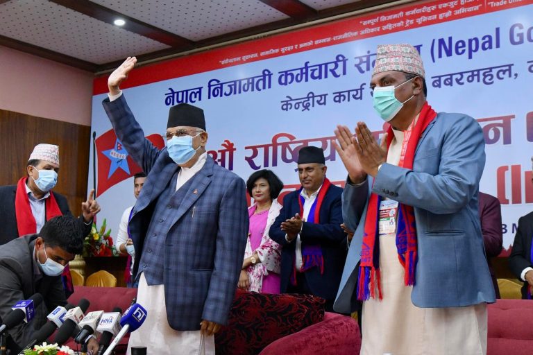 नेपाल निजामती कर्मचारी सङ्गठनको ११औँ राष्ट्रिय अधिवेशनको आज यहाँ उद्घाटन गर्दै उहाँले भन्नुभयो, ‘नागरिकको हैसियतले कर्मचारीको निर्वाचनमा स्वतन्त्र र निष्पक्ष भूमिका हुनुपर्छ, कुनै पार्टी विशेष लाग्न हुन्न ।’ राष्ट्रसेवक कर्मचारीले जुनसुकै सरकारलाई असहयोग होइन साथ र सहयोग पु¥याउनपर्नेमा सुझाव दिँदै अध्यक्ष ओलीले एमाले प्रतिपक्षमा रहे पनि पार्टी प्रवेशको लहर चलेको बताउनुभयो ।